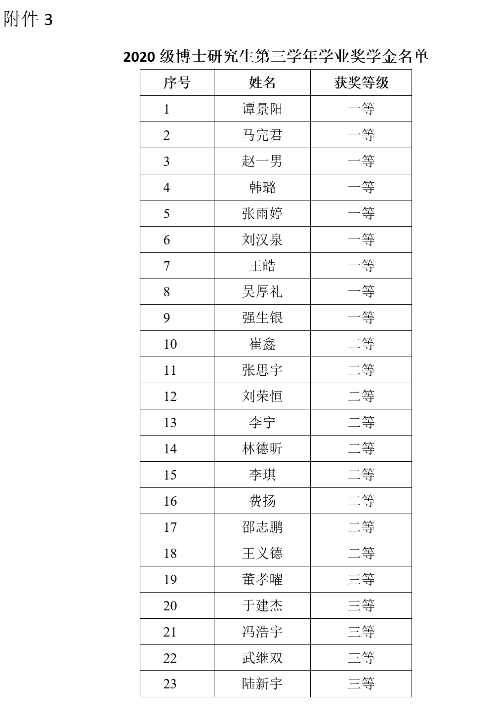 3. 2020級博士研究生第三學年學業獎學金名單