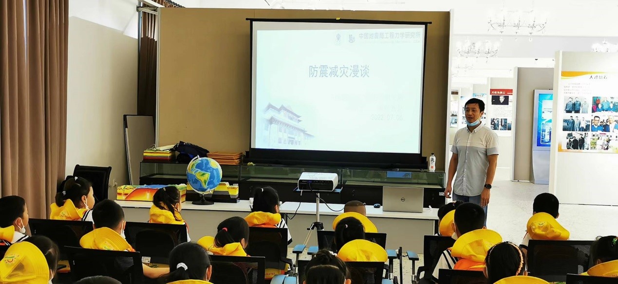 發布時間: 2022-07-07 點擊數量:5516為更好的宣傳防震減災知識,從小培養幼兒防震減災意識,蘭寧幼兒園于7月7日到我所開展了豐富多彩的地震科普宣傳活動。